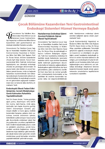 me B l m Dalı B l m Dalı Ba kanı Prof. rek, “Çok nce tasarlanmı endoskop le t ğ n , çocuk hastalarda endoskop k -