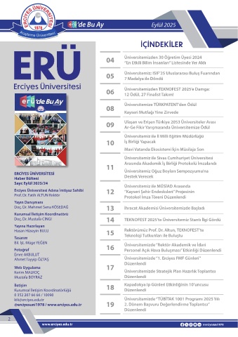 Page 2 - ERÜ'de Bu Ay Aylık Bülten EYLÜL-2025